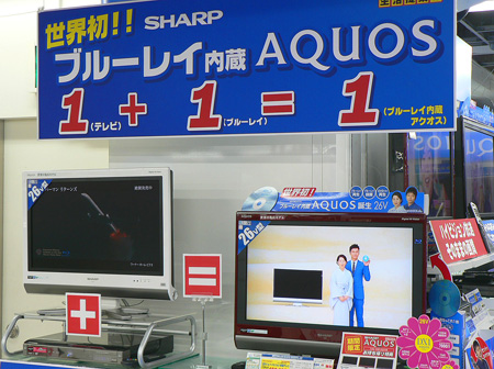 一方、BDレコーダー内蔵タイプは、09年1月末時点では、シャープの「AQOUS(アクオス) DX1」シリーズのみ。録画するために別途BD-Rなどのメディアが必要という欠点はあるが、HDD内蔵タイプ同様、リモコン1つでテレビ番組を録画できる上、BD/DVDプレーヤーとして利用することもできる。ディスクを挿入するだけで再生を開始するなど、より簡単な操作性も追求。設置場所を余り取りたくない、レンタルソフトも観たい、といった人にオススメだ。