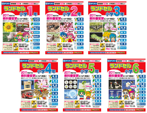「ランドセル」シリーズは、小学校の各学年で学習する主要教科全てを1本にまとめた総合学習ソフト。わかりやすいアニメーションを使った解説や、動画、写真を豊富に収録しており、PCならではの効果的な学習が可能。最新版は、新指導要領による2011年までの教科書変更に対応。更新内容は、インターネットの専用ページから無料でダウンロードできる。