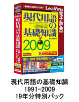 ロゴヴィスタは3月13日、PC用電子辞典「LogoVista電子辞典シリーズ」で、言葉の変遷がわかる新語事典「現代用語の基礎知識1991-2009 19年分特別パック」をUSBメモリに収録して発売する。価格は1万2800円。