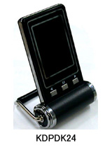 320×240ピクセルの2.4インチ縦型液晶を搭載。内蔵メモリに約60枚の写真を保存できる。スライドショー再生や、時計、カレンダー表示機能を備える。