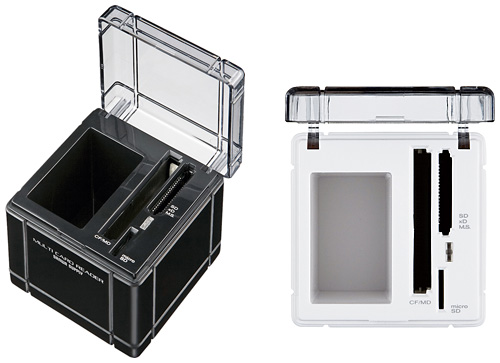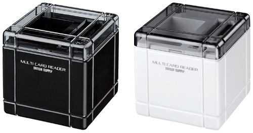 サンワサプライ、キューブ型のカードリーダー、メディアの収納スペースも