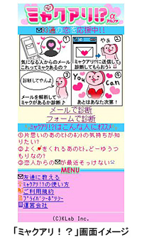 KLab(真田哲弥社長)は、携帯向け恋愛応援系サービス「ミャクアリ!?」を3月17日から提供開始した。