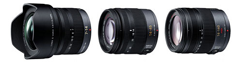 パナソニックは3月25日、「マイクロフォーサーズシステム」を採用するデジタル一眼専用の交換レンズとして、広角「H-F007014」、標準「H-FS014045」、高倍率「H-VS014140」のズームレンズ3製品を4月24日から順次発売すると発表した。