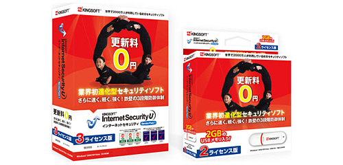 ラインアップと価格は、2ライセンスUSBメモリ版が2480円、3ライセンスCD-ROM版が2980円。ダウンロード版は、1年更新版が980円、無期限版が1980円、そのほか広告付きの完全無料版を用意する。対応OSはWindows Vista/XP/2000。なお、既存の「Kingsoft Internet Security」ユーザーは、自動アップデート機能により、順次「Service Pack 1」へバージョンアップする。