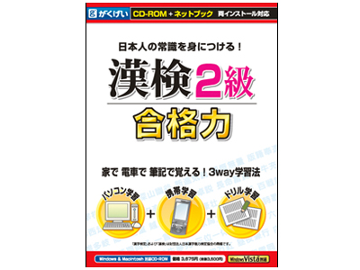がくげいは、PCで漢字検定能力テスト向けの学習ができるソフト「漢検 合格力シリーズ」など、学習ソフト4シリーズで、ミニノートPC向けにダウンロードでのインストールにも対応した新バージョンを4月17日に発売する。対応OSはいずれもWindows Vista/XP/2000、Mac OS 10.2-10.5。