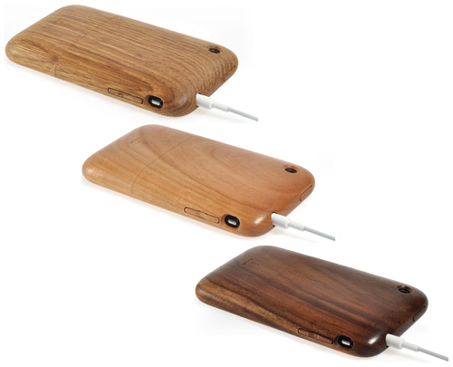 「iWoodシリーズ」は、チェリー、オーク、マホガニー、クルミ、メープルなどの天然木を使用したiPod/iPhone専用ケース。木自身の特徴である触り心地や木目を生かし、彫刻作品のように仕上げた。