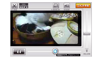 操作面では、iPhoneのタッチパネルを生かしたインターフェイスを採用。動画の視聴中に画面をタップすると、コントロールパネルの表示・非表示を選択できるほか、スライダーによるボリューム調整や、コメント入力画面への移動などができる。また、コメント入力画面では、タップ操作で文字のサイズや色、表示位置の指定が可能。