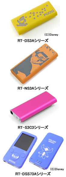 「RT-DS3Aシリーズ」は、ディズニーキャラクターを描いたシリコン製ケース。カラーとキャラクターの組み合わせは、ダークブルーがミッキー、ピンクがミニー、ブルーがスティッチ、イエローがプーさん、ホワイトがティンカー・ベル。直販サイトでの価格は980円。