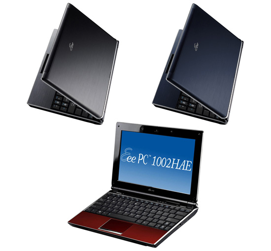 「Eee PC 1002HAE」は、シックなデザインの薄型アルミニウムボディを採用したビジネス向けモデル。本体カラーはメタルグレー、ダークブルー、新色ディープレッドの3色をラインアップする。