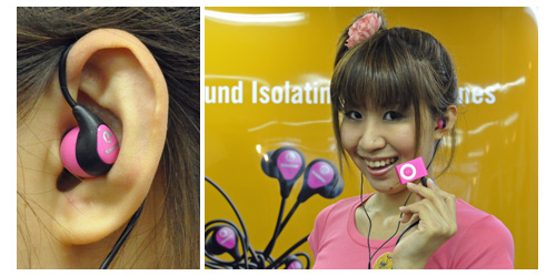 女性に人気のあるピンクも登場、耳の後ろからケーブルを回して本体を装着する