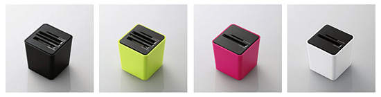 「MR-C14」と「MR-C15」は、キューブ型のデザインを採用。カードスロットを本体上部に備え、メモリカードを上から縦方向に差すタイプのため、片手で簡単に抜き差しできる。