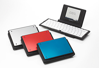 主な仕様は従来と同様で、640×480ドットの4型モノクロTFT液晶と、キーピッチ17mmのキーボードを備え、インターフェイスはUSB端子、最大2GBまで対応するmicroSDカードスロット。電源は単四形乾電池2本で、駆動時間は20時間。本体サイズは折りたたみ時で幅100×奥行き145×高さ30mm、重さは370g。