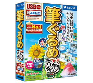 ジャングル(高田晃子社長)は5月15日、ハガキ作成ソフト「筆ぐるめ」シリーズの夏バージョンとして、ソフトを2GBのUSBメモリに収めた「筆ぐるめ Ver.16 夏祭り USBメモリ版」を6月4日に発売すると発表した。価格は3980円。