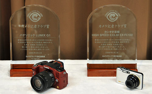 (左から)「カメラ記者クラブ賞」の「LUMIX G1」と「HIGH SPEED EXILIM EX-FC100」