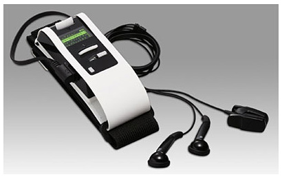 本体には、512MBの内蔵メモリ、加速度センサー、1インチの有機ELディスプレイを搭載。イヤホンには、耳たぶに装着して運動中の心拍数を計測する脈拍センサーが付属する。本体サイズは75.7×38.0×20.1mm、重さ65g。