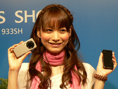 携帯電話の新製品は、1000万画素のCCDを搭載した高性能デジカメケータイ「AQUOS SHOT 933SH」や、太陽光でも充電可能なソーラー防水ケータイ「SOLAR HYBRID 936SH」、約3.0インチのサブディスプレイを搭載した防水の「mirumo 934SH」の3機種が目玉。