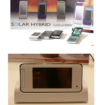 太陽光で充電できる「936SH」(上)、「934SH」は横置きで充電する(下)