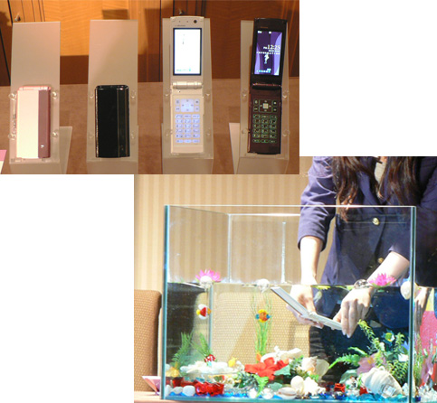 「F-08A」は、「水中で撮影ができる世界初のケータイ」(佐相秀幸・モバイルフォン事業本部長)。さらに、「これまで角ばったデザインになりがちだった防水携帯に曲線を取り入れた」(大谷信雄・モバイルフォン事業副本部長)など、防水性能に合わせてデザインも強化。佐相事業本部長は「防水ケータイなら富士通」と、自信を見せた。