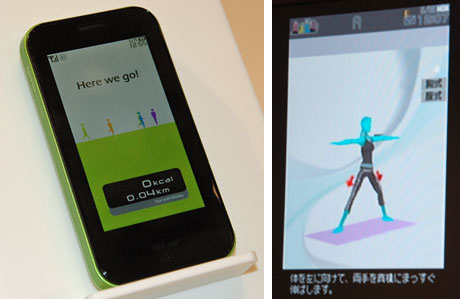 シャープ製の「Sportio water beat」は、日常のスポーツをサポートするサービス「au Smart Sports」の新しいアプリケーションをプリインストールするのが特徴。簡単な質問に答えるだけで、健康状態やライフスタイルに合わせた100種類のエクササイズプログラムを提案する「Fitness」のほか、ゴルフの目標を「おしゃれゴルファー」「即席ゴルファー」「アスリートゴルファー」の3つから設定すると、目標に合わせたレッスン・コンテンツを提案してくれる「Golf」などを備える。