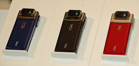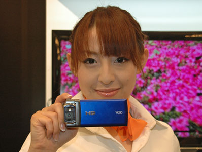 日立製作所製の「Mobile Hi-Vision CAM Wooo」は、国内で初めて1280×720画素、最高30fpsのハイビジョン動画を撮影可能な携帯電話。高画質エンジン「Picture Master for Mobile」や手ブレ補正機能、顔検出オートフォーカス機能などを備える。光学3倍ズームにも対応する。