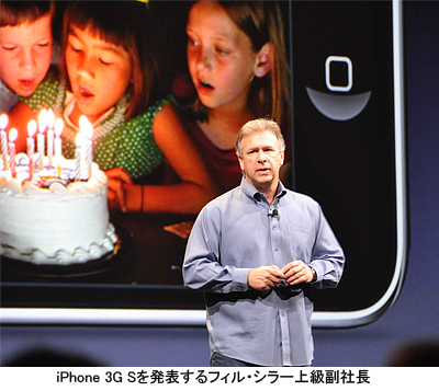 米アップルは現地時間の6月8日、iPhoneの新モデル「iPhone 3G S」を6月19日に米国など8か国で発売すると発表した。日本では6月26日に発売する。米サンフランシスコMoscone Westで8日に開幕した同社の技術者向けイベントWWDC 09(Apple Worldwide Developers Conference 2009)の基調講演で、フィル・シラー上級副社長らが明らかにしたもの。
