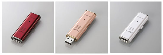 両シリーズともにキャップレスのスライド方式を採用し、キャップを紛失する心配がない。「MF- XWU2」シリーズは、リップスティックのような艶やかなモデル。カラーは女性に人気のレッド、ピンク、ホワイトの3色を用意する。実勢価格は8GBモデルが4780円前後、16GBモデルが7880円前後の見込み。