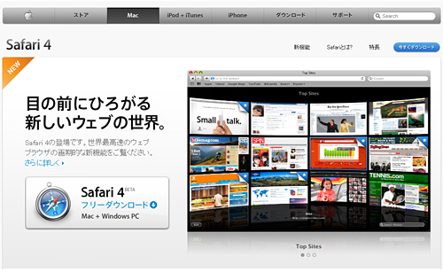 アップル、最新ブラウザ「Safari 4」のダウンロード数が3日で1100万を突破