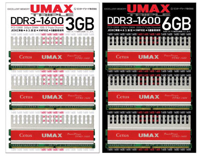 実勢価格は、2GB×3枚の6GBセット「Cetus TCDDR3-6GB-1600OC」が1万3500円前後、1GB×3枚の3GBセット「Cetus TCDDR3-3GB-1600OC」が8000円前後の見込み。