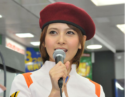 ビックカメラ、ヱヴァケータイ記念式典、加藤夏希さんが「NERV」の制服姿でアピール