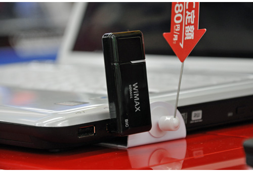 1階入り口付近にはミニノートPCとともに「BIC WiMAX SERVICE」を体験できるデモ機を設置