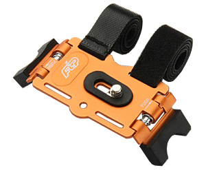中央にカメラの三脚穴に取り付けるネジを搭載し、ベルクロテープで自転車のハンドルや棒状のものにカメラを装着できるスタンド。走行中の写真や映像を撮るなど、通常ではできないような撮影が楽しめる。装着するカメラの大きさや重さの制限は特にないという。