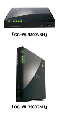 なお、同社が6月18日に発表したIEEE802.11n/g/bの規格に対応する無線LANルータ「CG-WLR300GNHシリーズ」も、6月下旬より順次発売している。ラインアップと価格は、6月26日に発売したルータ単体の「CG-WLR300GNH」が9975円、7月上旬発売予定のUSBアダプタセットモデル「CG-WLR300GNH-U」が1万3440円、PCカードセットモデル「CG-WLR300GNH-P」が1万4490円。