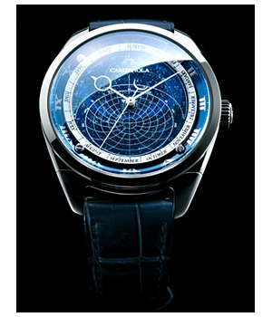「コスモサイン」は、文字板上に北緯35度の全天星座をリアルタイムで再現する天体時計で、今回は6年ぶりの新モデルとなる。新製品は従来より星座盤面積を約1.5倍拡大し、視認性を大幅に向上した。星座盤には1027個の恒星をはじめ、アンドロメダ銀河やオリオン大星雲などの星雲・星団166個を正確にレイアウト、「文字板の中の小宇宙」を表現した。
