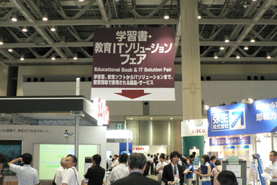 教育現場で使用する最先端の製品・サービスが一堂に集まった「学習書・教育ITソリューションフェア」が、7月9-12日に東京ビッグサイト(東京・江東区)で開かれた。文部科学省の「スクール・ニューディール構想」の1つである「学校ICT環境の整備」(ICT=Information and Communication Technology:情報・通信技術)の推進を受け、出展社数は前年に比べ2倍に拡大。電子黒板やプロジェクター、教育ソフトなどが並べられた会場は、熱気に包まれていた。