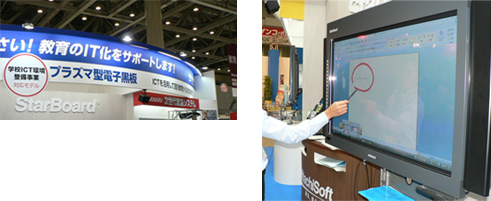 日立ソフトは、昨年に比べブース面積を拡大。プラズマ型電子黒板「StarBoard」などを展示した