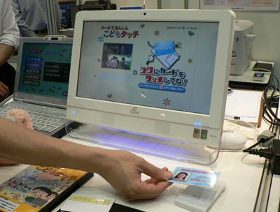 そのほか、ダイワコンピューテックは、ASUSのタッチパネル対応のデスクトップパソコン「Eee Top」とICカードを組み合わせた学習塾向け入退出システムを展示。また、ドコモ・システムズも、ICカードと専用リーダーを組み合わせて子どもの登下校の記録を保護者にメールで知らせる学校向けASPサービスを展示するなど、子どもの安全を見守るサービスも多く出展された。