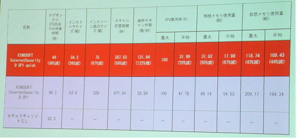 「Kingsoft Internet Security U Service Pack 1」との比較