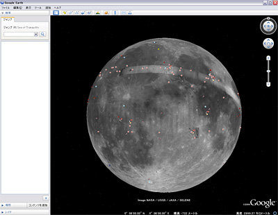 月面の地形マップには、宇宙航空研究開発機構JAXAの月周回衛星「かぐや」のデータが利用されている。なお、「Moon in Google Earth」は「Google Earth」バージョン5.0で閲覧可能。