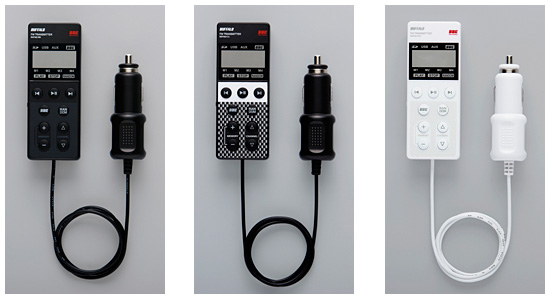 また、USB給電ポート付きで、iPodやウォークマンを充電しながら音楽を楽しむことができる。送信周波数は76.0-90.0MHz。車の電源は12Vに対応し、シガーソケットから給電する。カラーはブラック、カーボン、ホワイトの3色。