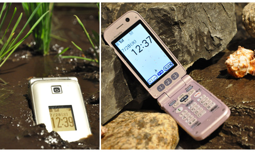 「泥がついても洗い流せるから安心」をコンセプトとした防水・防塵性能を備える端末。防水はIPX5/IPX7等級で、台所や洗面所などの日常生活のほか、海や川のレジャーで濡れてもそのまま使用できる。さらに、同シリーズのユーザーであるシニア世代は、ガーデニングや園芸を趣味としている人が多く、こうした作業の際に泥がついても洗い流せるのもメリット。IP5X等級の防塵性能も備える。