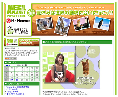 動物チャンネル/アニマルプラネットと連動し、特設ページで五大陸に生息する野生動物、かわいいペット、さらには恐竜や珍しい昆虫など、世界のさまざまな動物達の情報を紹介する。また、動物チャンネル/アニマルプラネットで7、8月に放送される番組の一部の動画を見ることもできる。