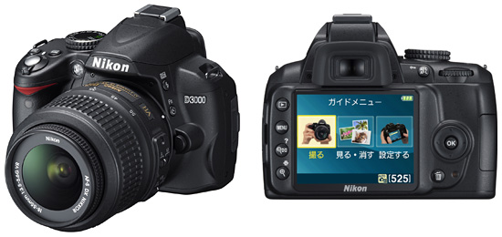 また、ボディとレンズを組み合わせたレンズキットも同時に発売する。価格はオープン。実勢価格は標準ズームレンズ「AF-S DX NIKKOR 18-55mm f3.5-5.6G VR」が付属する「D3000 レンズキット」が7万円前後、「AF-S DX NIKKOR 18-55mm f3.5-5.6G VR」に加えて、望遠レンズ「AF-S DX VR Zoom NIKKOR ED 55-200mm f4-5.6G(IF)」が付属する「D3000 ダブルズームキット」が10万円前後の見込み。