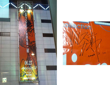 18mの巨大垂幕と鶴巻和哉監督のサイン