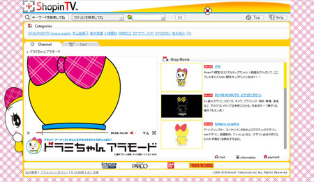 展覧会は、Web上での「ヴァーチャル展開」と実店舗での「リアル展開」で構成。「ヴァーチャル展開」では、キッズTシャツなど限定アイテムを購入できる動画ショッピングサイト「ShopinTV」、ゲーム感覚で商品を購入できるモバイルサイト、動画を見てから商品を購入できるブログツール提供の3つを14日からスタートする。