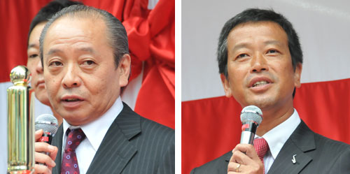ソフマップの野口進・代表取締役社長と山元賢治・アップルジャパン 代表取締役