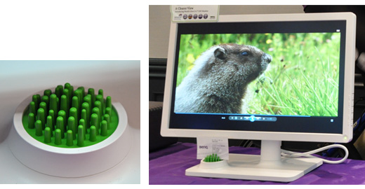 このECOを意識した液晶ディスプレイは、消費電力の低さをマーティン モーレ・代表執行役社長自らがアピール。自転車で発電できる発電機を用意し、供給される電力が17W程度であっても画面に映像が表示されことを、遊び心のあるデモで紹介した。