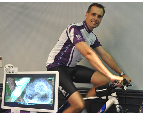 マーティン モーレ・代表執行役社長の自転車発電によって点灯する「V2200 eco」