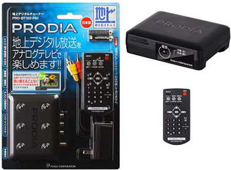 イオンは9月4日、アナログテレビと接続すれば地上デジタル放送が視聴できるピクセラ製の地デジチューナー「PRD-BT102-PA1」を9月19日に発売すると発表した。価格は4980円。全国のジャスコ、サティなど481店舗で取り扱う。