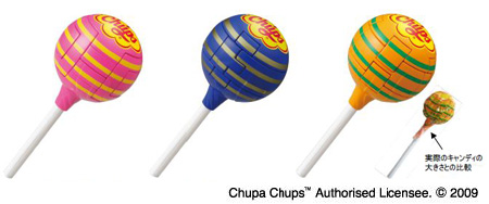 ラインアップとカラーは、クリーミー系デザートで人気No.1の「ストロベリークリーム」がピンク、チュッパチャプスの中で不動の人気No.1「コーラ」がブルー、消費者アンケートで「食べてみたいフレーバーNo.1」になって商品化された「マンゴー」がオレンジ。パズルの難易度は、順に「やさしい」「普通」「難しい」となっており、レベルと好きなカラーに応じて選べる。サイズは幅60×高さ140×奥行き60mm。