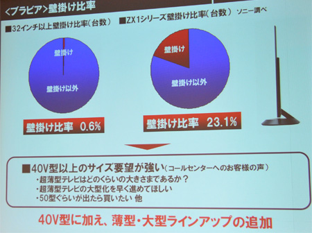 そこで、新製品では「煩わしい配線をなくしたワイヤレス技術を採用し、従来の『ZX1シリーズ』の40V型に加え、より薄型・大型のラインアップを追加することで、壁掛けの大きなハードルを引き下げた」と開発の狙いを語った。